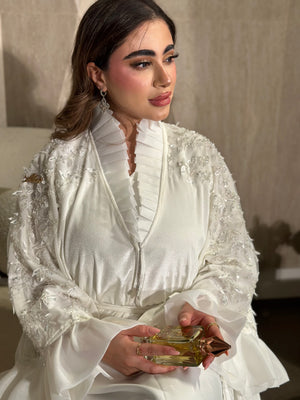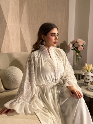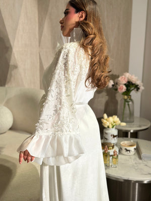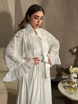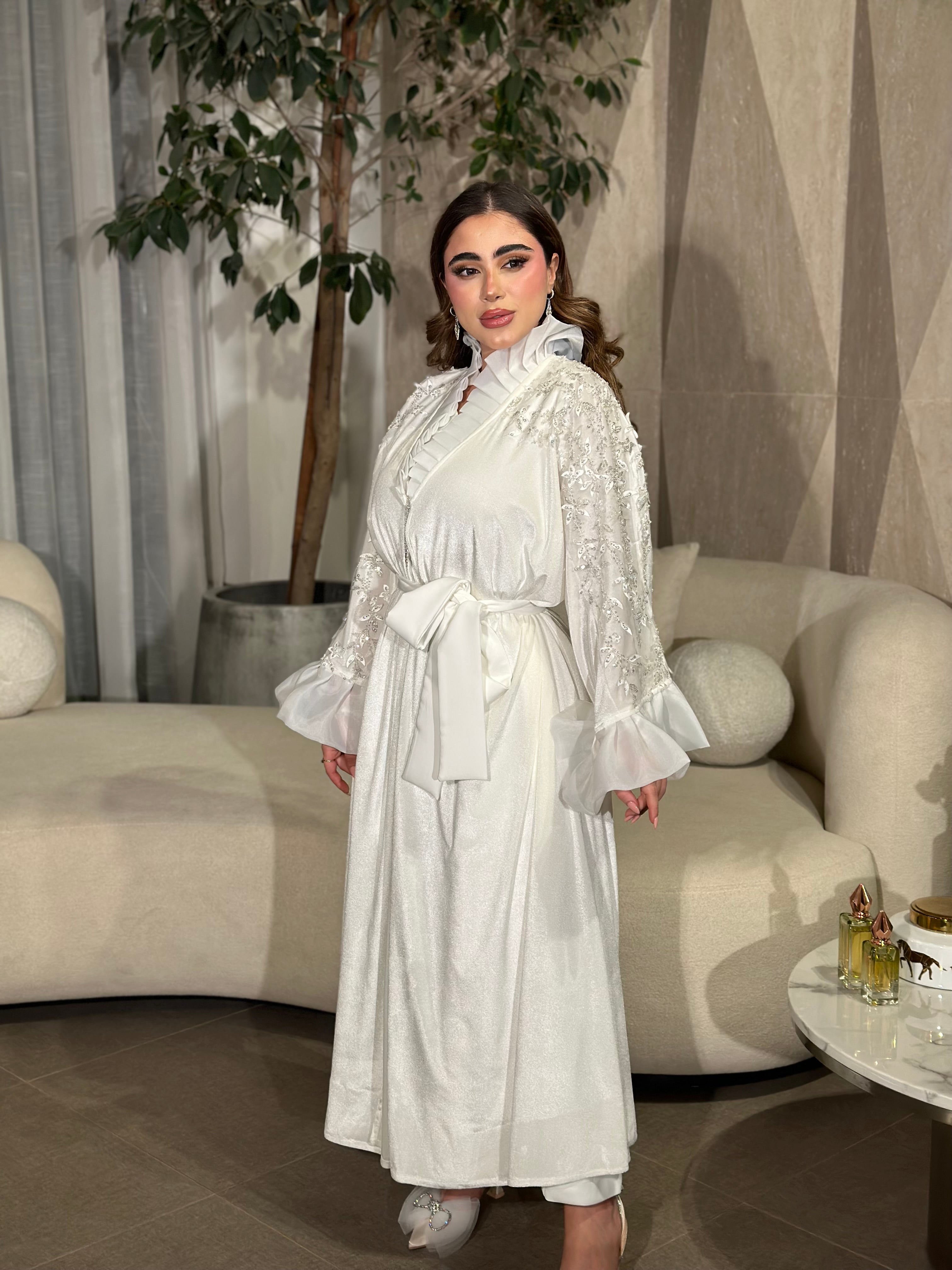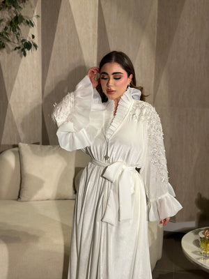 روب شتوي مخمل حرير باللون الاوف وايت مشكوك مع القطعة الداخليه درس حفر كريب