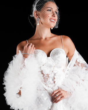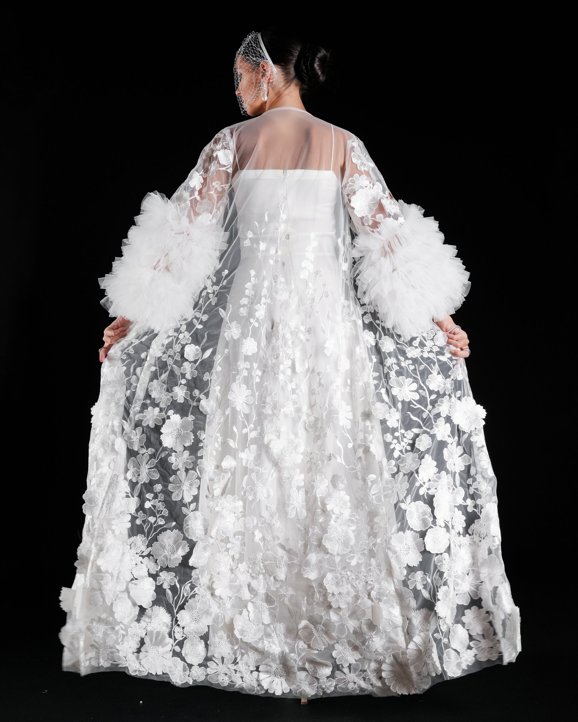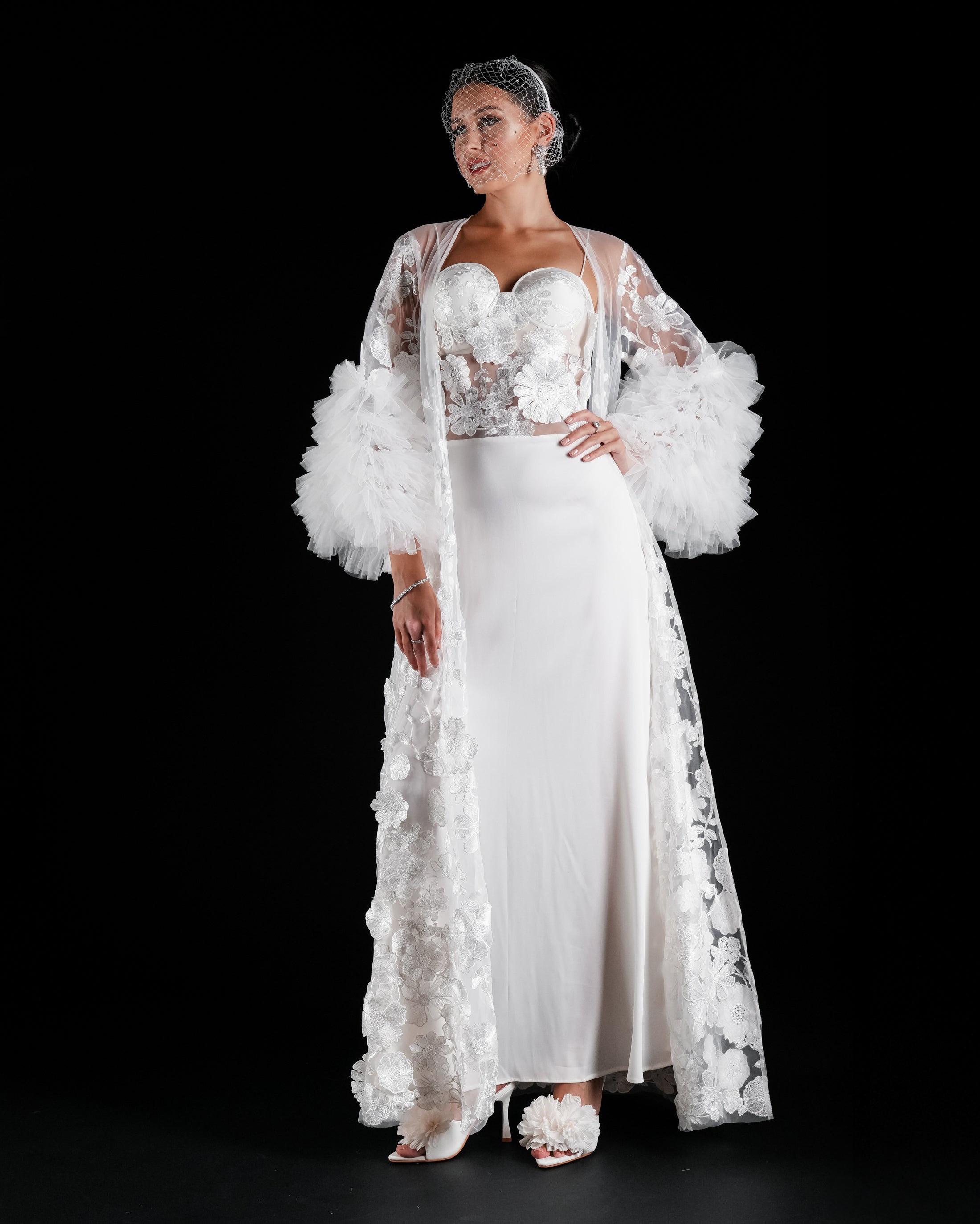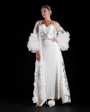 روب عروس مفصل خصيصاً لج عبره عن قطعتين الخامة الموردة والتور والحرير