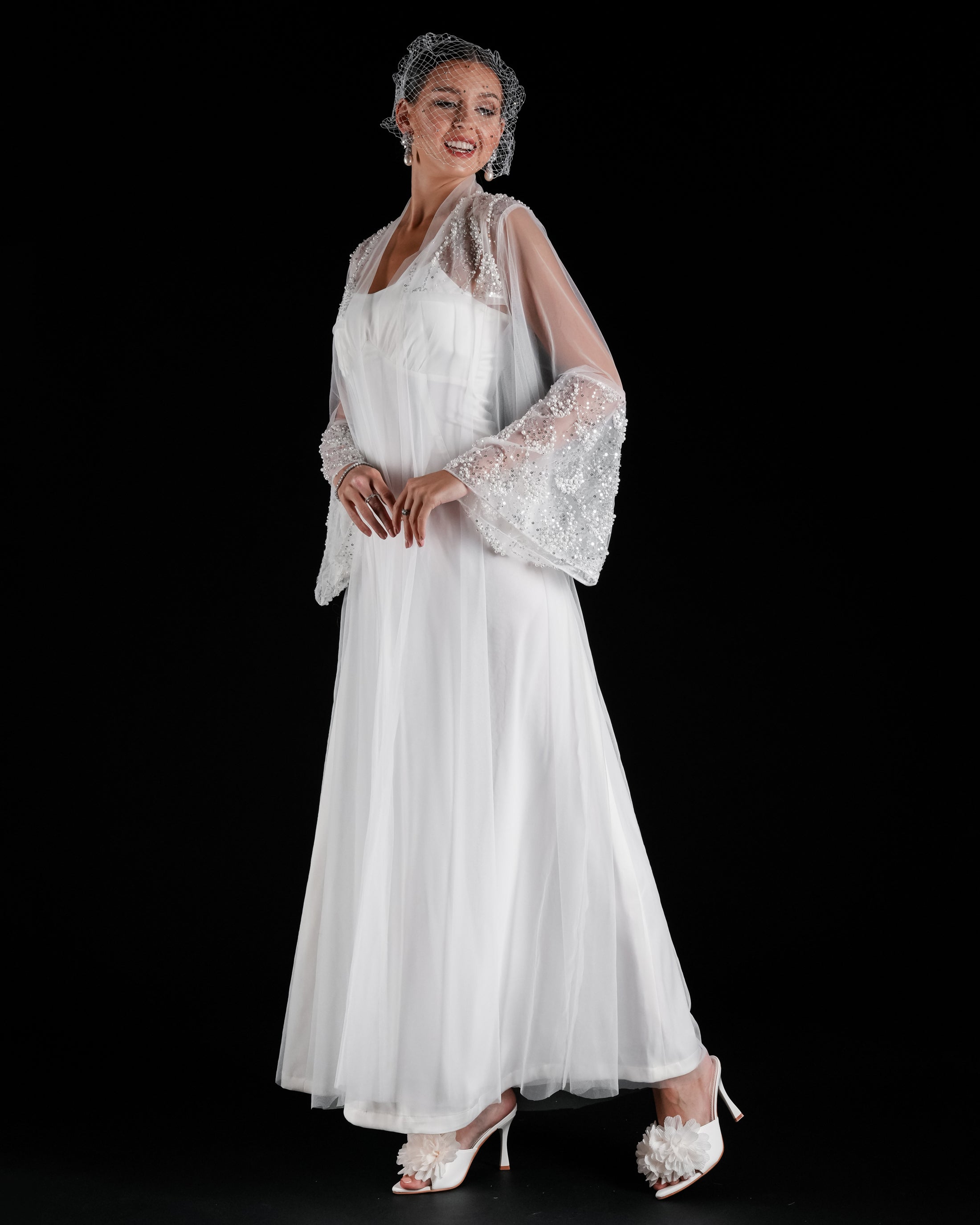 روب عروس يفصل لك خصيصاً عبارة عن قطعتين روب تور مشكوك بالجموم والظهر.والقطعة الداخلية نفنوف حرير بقصة مناسبه لعروس اول ليلة او تصوير