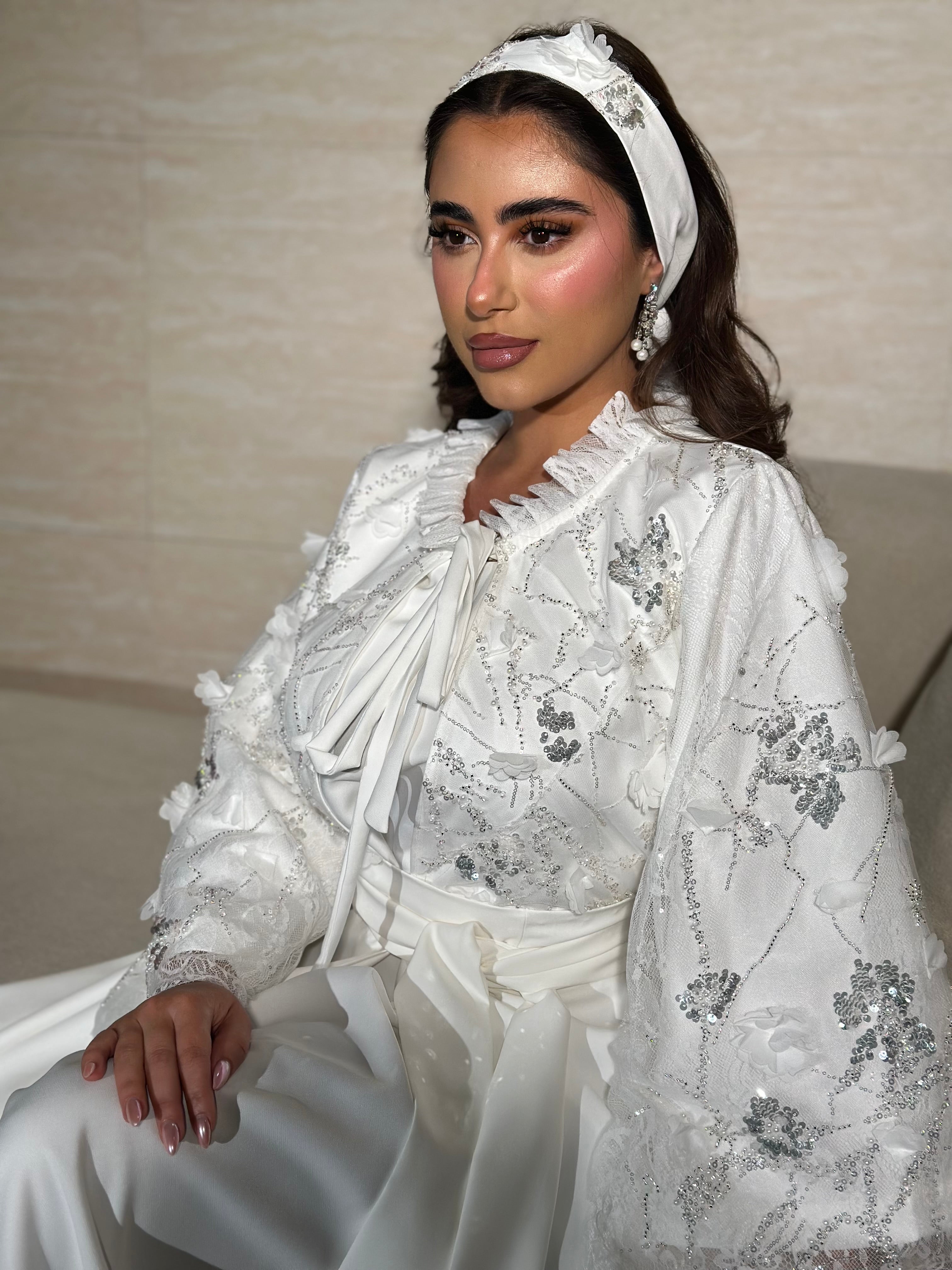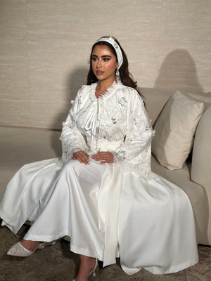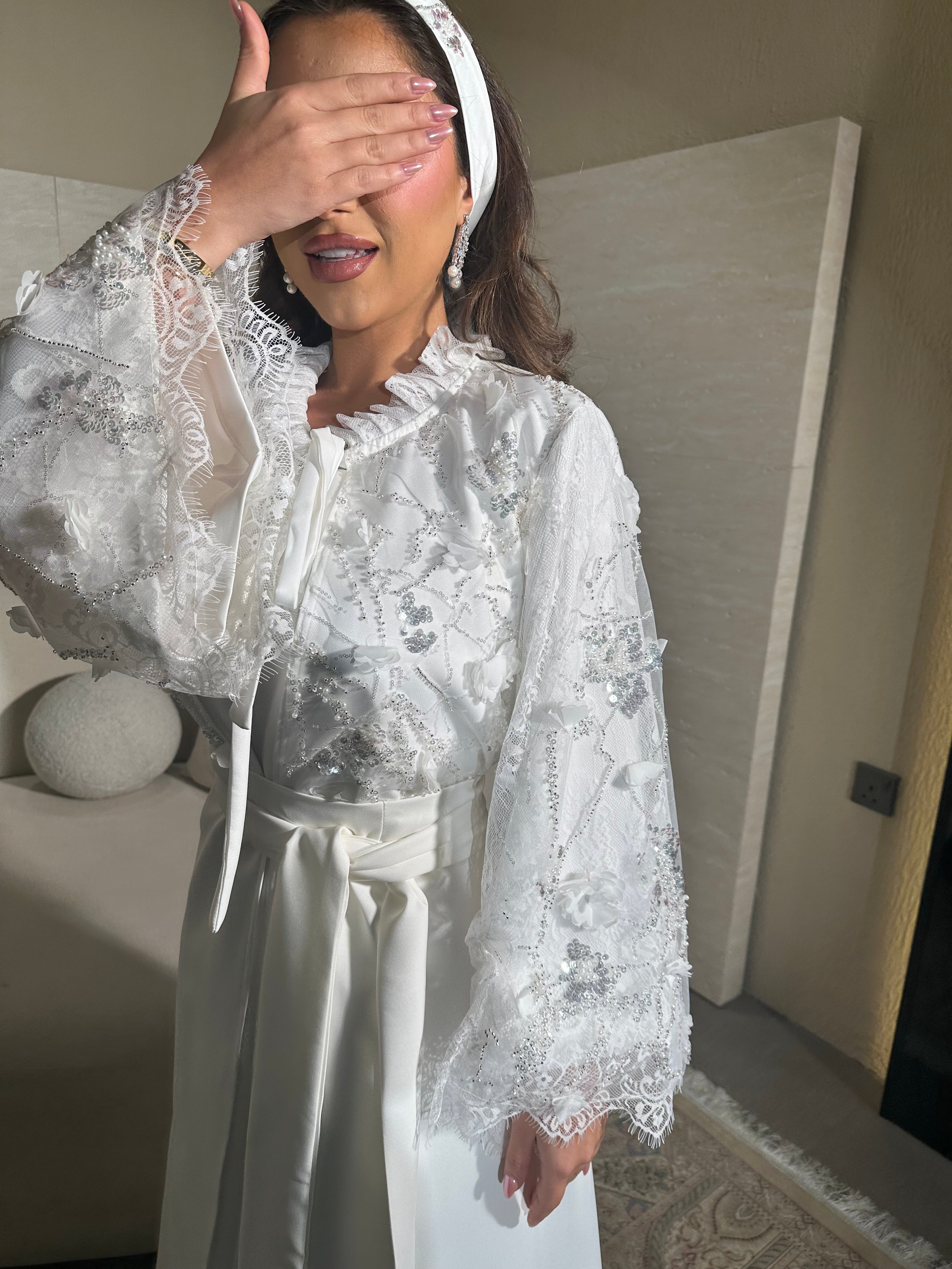 روب قطعتين الداخليه درس كريب الروب شيفون باللون اللوف وايت مع دانتيل وخام مشكوك
