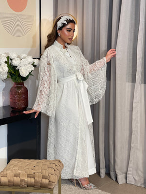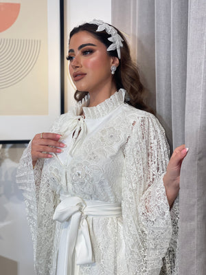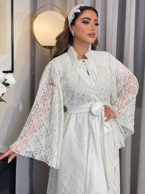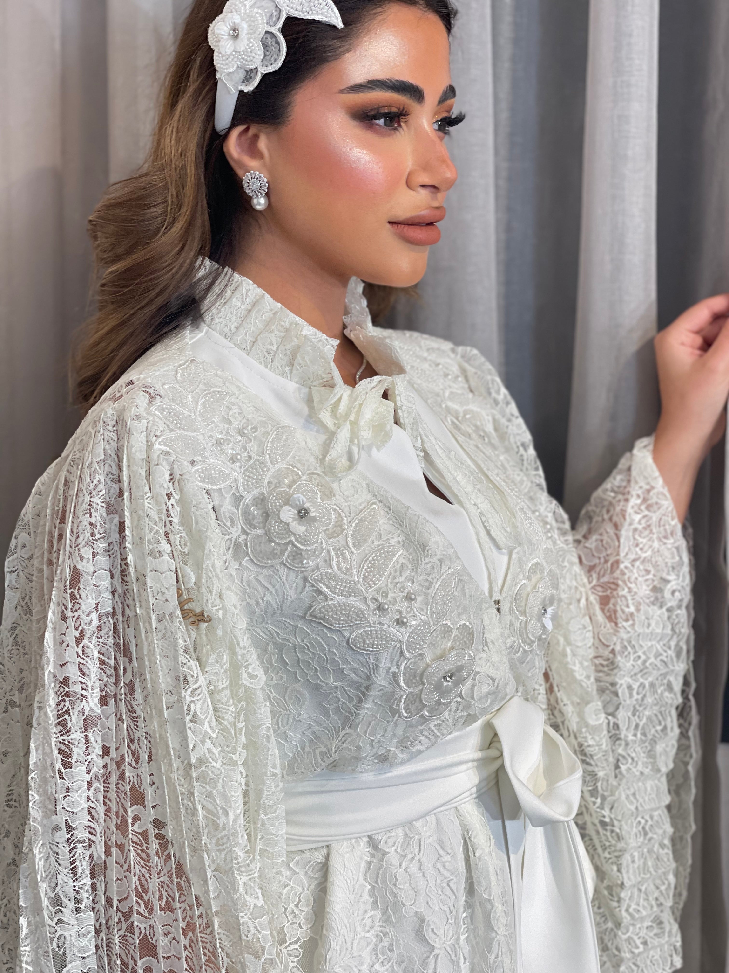 روب عبارة عن قطعتين باللون السكري الخامة دانتيل والداخليه كريب مع الهيد بيس